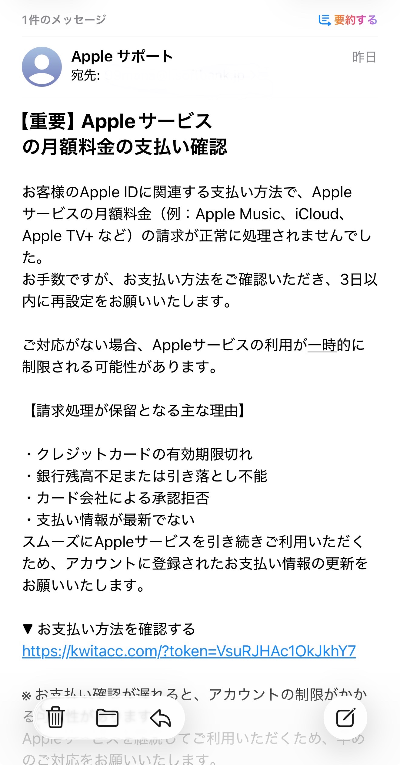 【重要】Appleサービスの月額料金の支払い確認