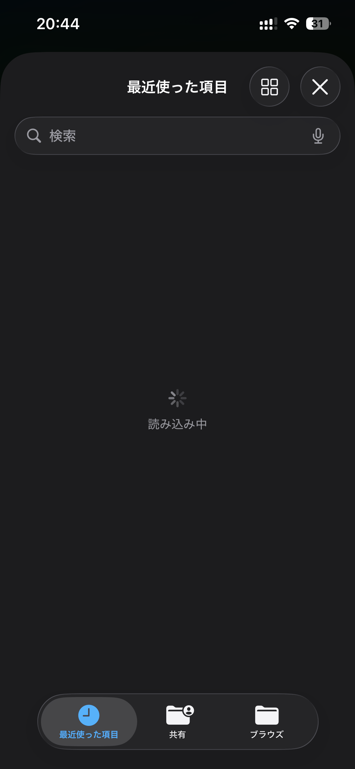アプリで、「最近使った項目」ファイル参照するときにどんなファイルを押しても反応しない