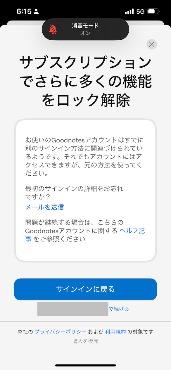 ちなみに、Goodnotesには質問のメールは送っており、その際、買い切りの領収書画像も添付しております。